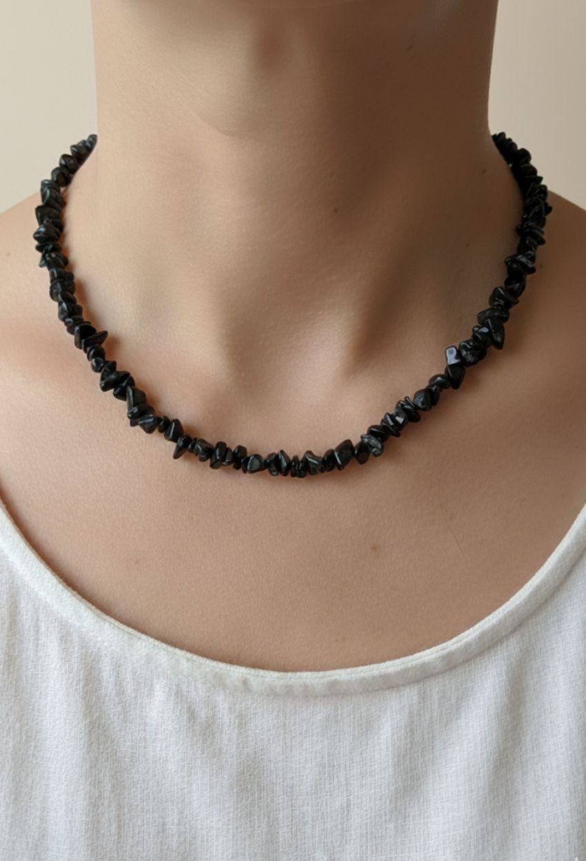 Colar de Cascalho de Ônix – Proteção, Estabilidade e Autoconfiança