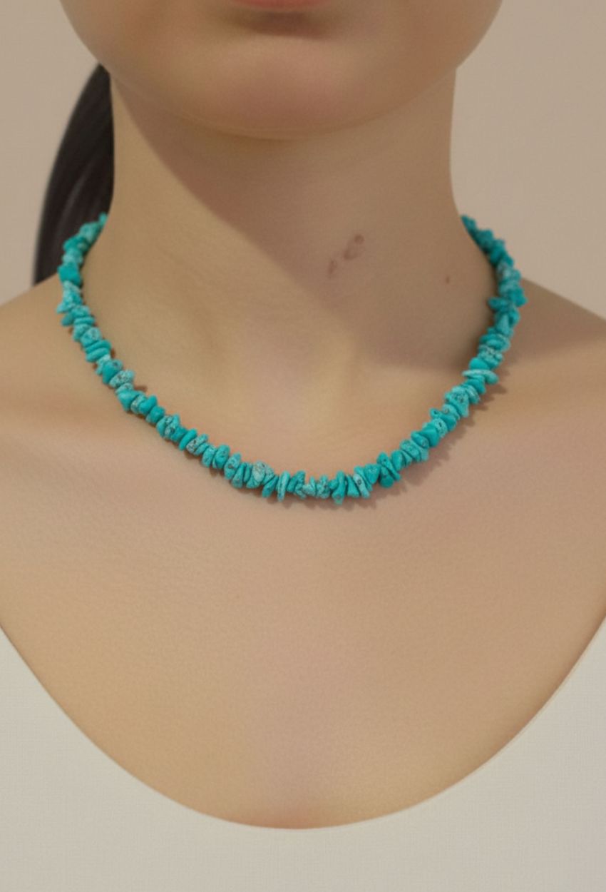 Conecte-se com a energia da calma e do equilíbrio com o nosso Colar de Cascalho de Howlita Turquesa. Feito à mão com pedras naturais selecionadas, este colar é mais do que um simples acessório; é um amuleto de bem-estar para o seu dia a dia.