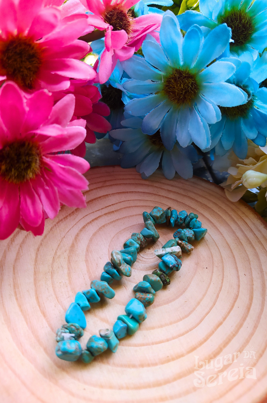 A Howlita Turquesa, conhecida por seus tons entre azul e verde, é uma pedra que acalma a mente e relaxa o sistema nervoso, auxiliando na verbalização dos pensamentos e na comunicação clara. Ela traz paz, harmonia e equilíbrio, ajudando a lidar com situações difíceis com serenidade.